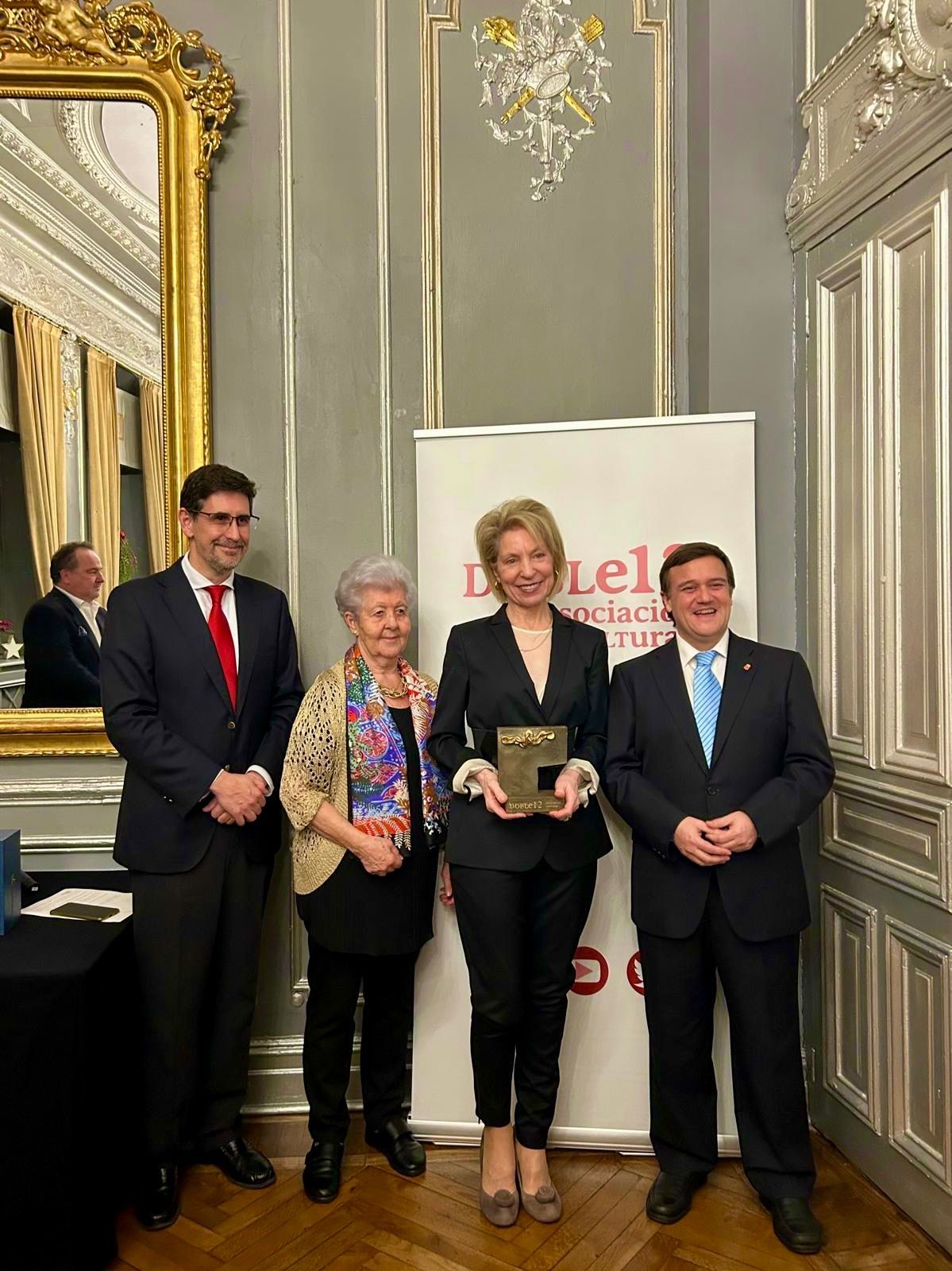 En la foto, Almudena acompañada por miembros de la junta directiva de la Asociación Cultural Doble12